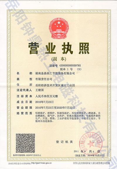 鐘鼎熱工出資注冊成立了湖南金鼎熱工節(jié)能服務(wù)有限公司,可開展工業(yè)爐窯的節(jié)能服務(wù)、節(jié)能項(xiàng)目設(shè)計(jì)、節(jié)能項(xiàng)目改造服務(wù)。